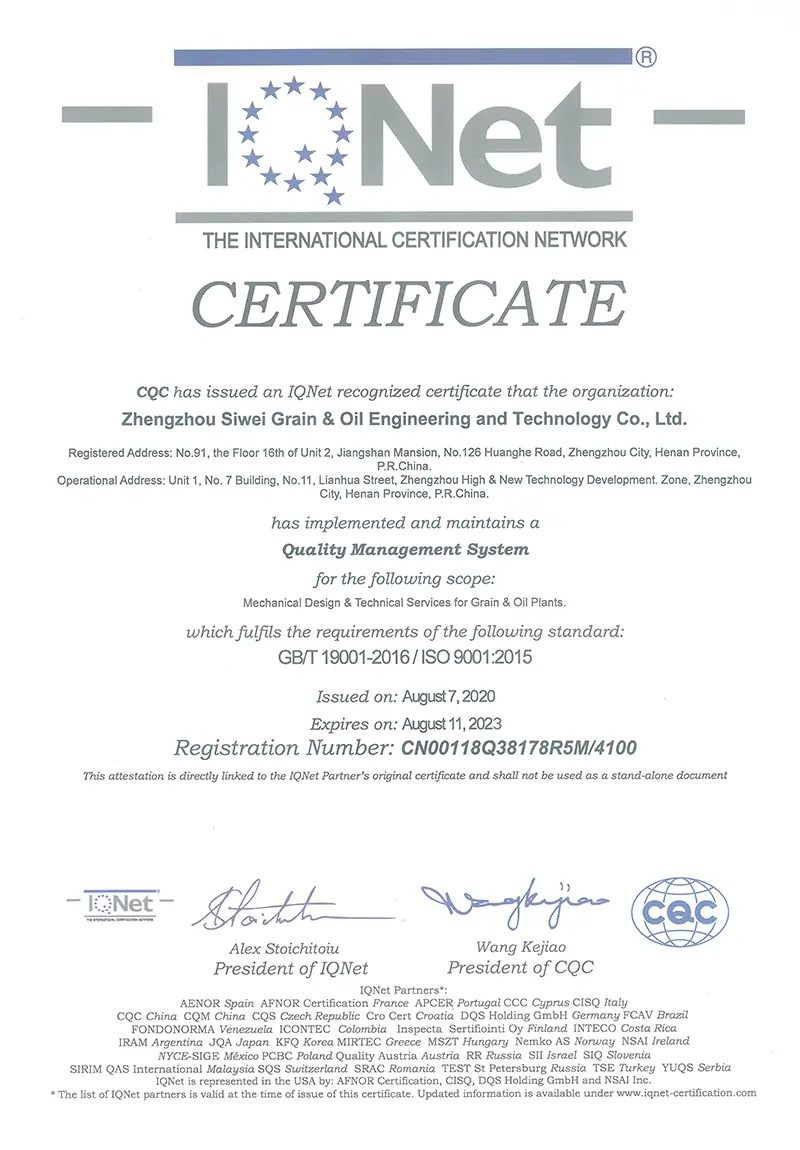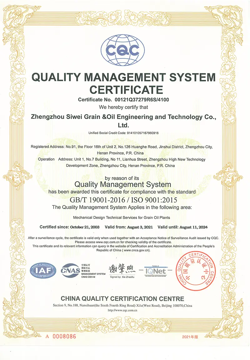 Zhengzhou Siwei Company es una empresa innovadora en tecnología de ingeniería de granos y aceites que integra ciencia, industria y comercio.