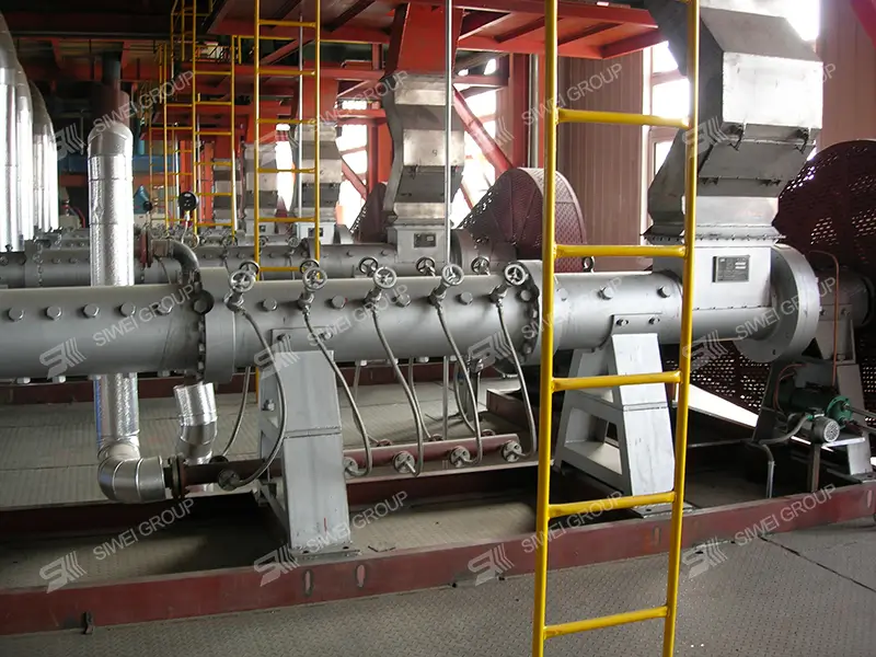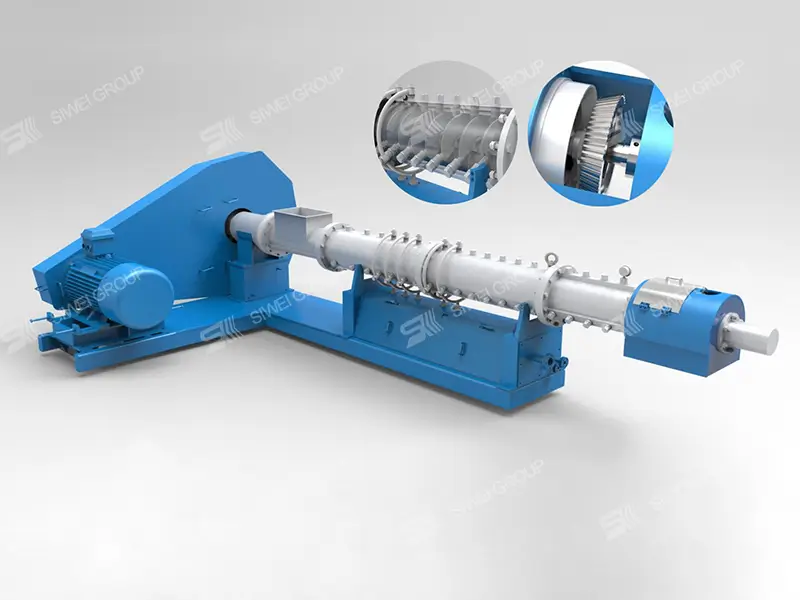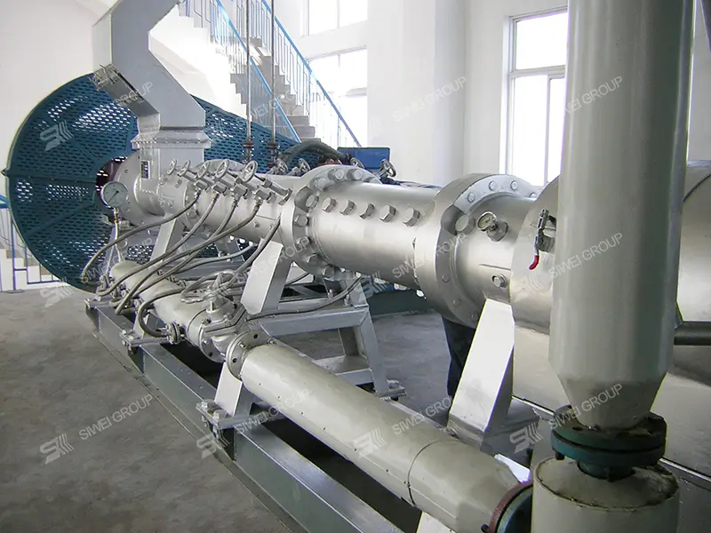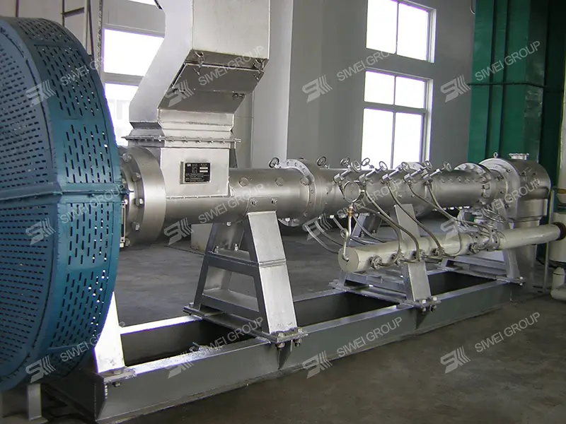 Las semillas oleaginosas se someten a acciones mecánicas como extrusión, amasado, cizallamiento y presurización en el expansor, así como a una serie de acciones físicas y químicas como el efecto de calor húmedo de la inyección de vapor y el efecto de calentamiento por fricción. El tejido celular de las semillas oleaginosas se destruye completamente y sus enzimas se pasivan. Al descargarse por la salida del extrusor, los materiales sometidos a alta temperatura y alta presión se transforman instantáneamente de alta presión a presión normal, liberando rápidamente agua de la estructura del material, que se expande y forma, obteniendo así materiales extruidos sueltos y de alta resistencia.