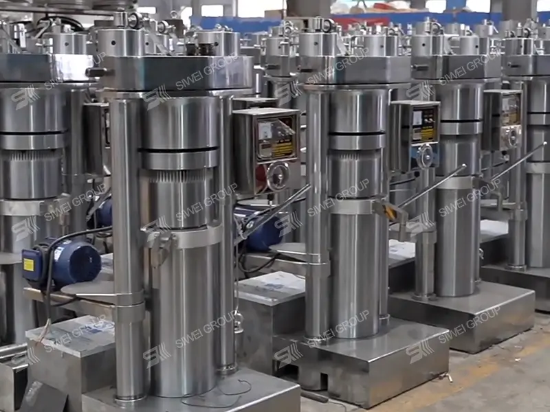 El aceite se vierte directamente en el barril para su extracción. El aceite extraído fluye al tanque de aceite, donde el pistón y la placa de prensado se unen para extraer la pasta prensada. Este método es ideal para prensar aceites con alto contenido de aceite, como sésamo, cacahuetes, nueces, almendras, semillas de lino, colza, etc.